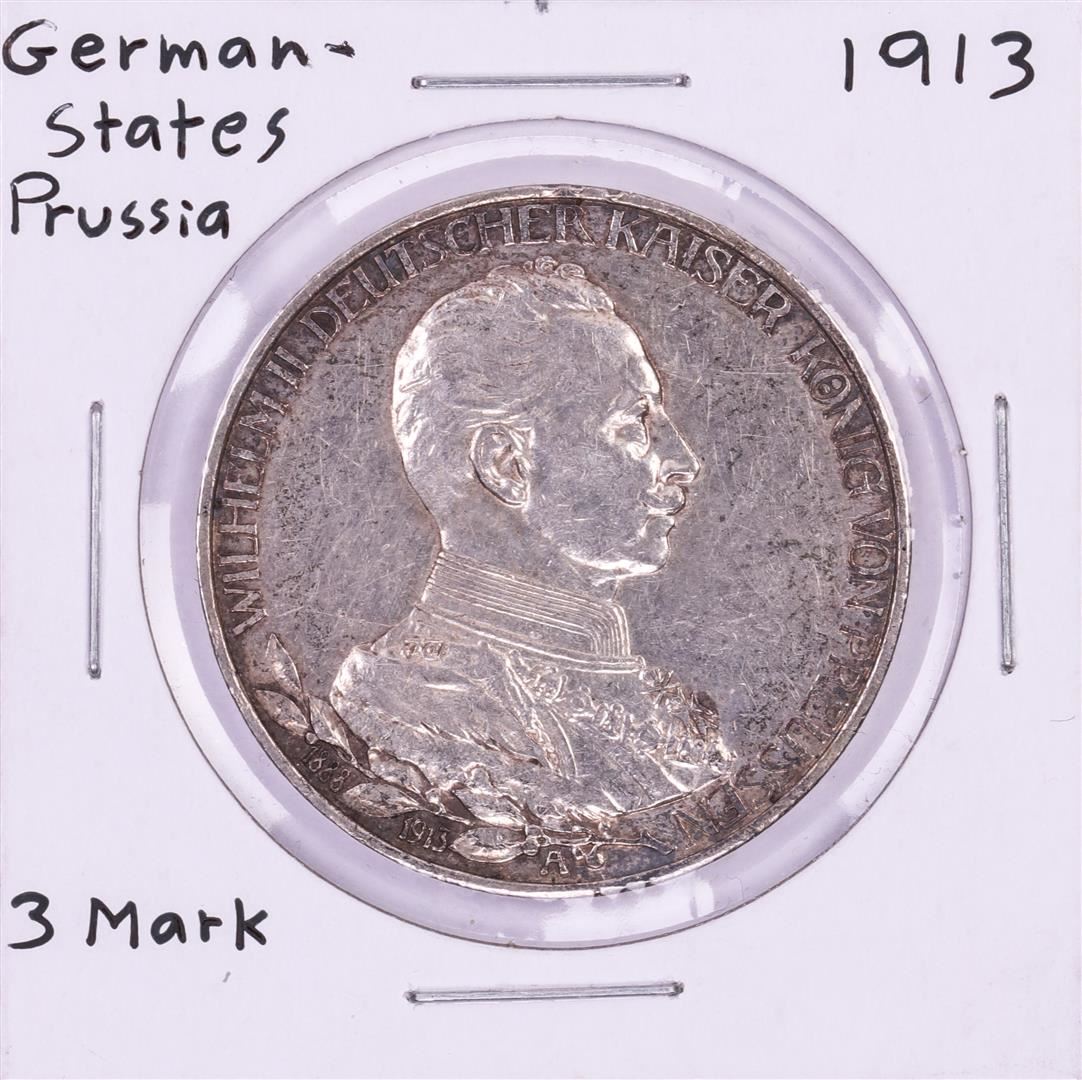 One 1913 German States Prussia 3 Mark Silver Coin.