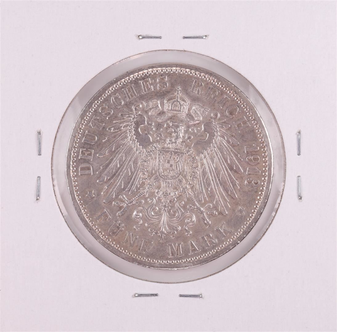 One 1913 Germany Baden 5 Mark Silver Coin.