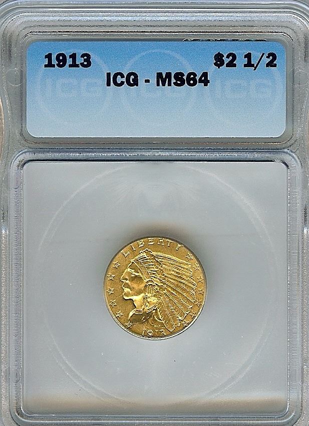 1913 INDIAN HEAD GOLD $2.5 ICG MS64