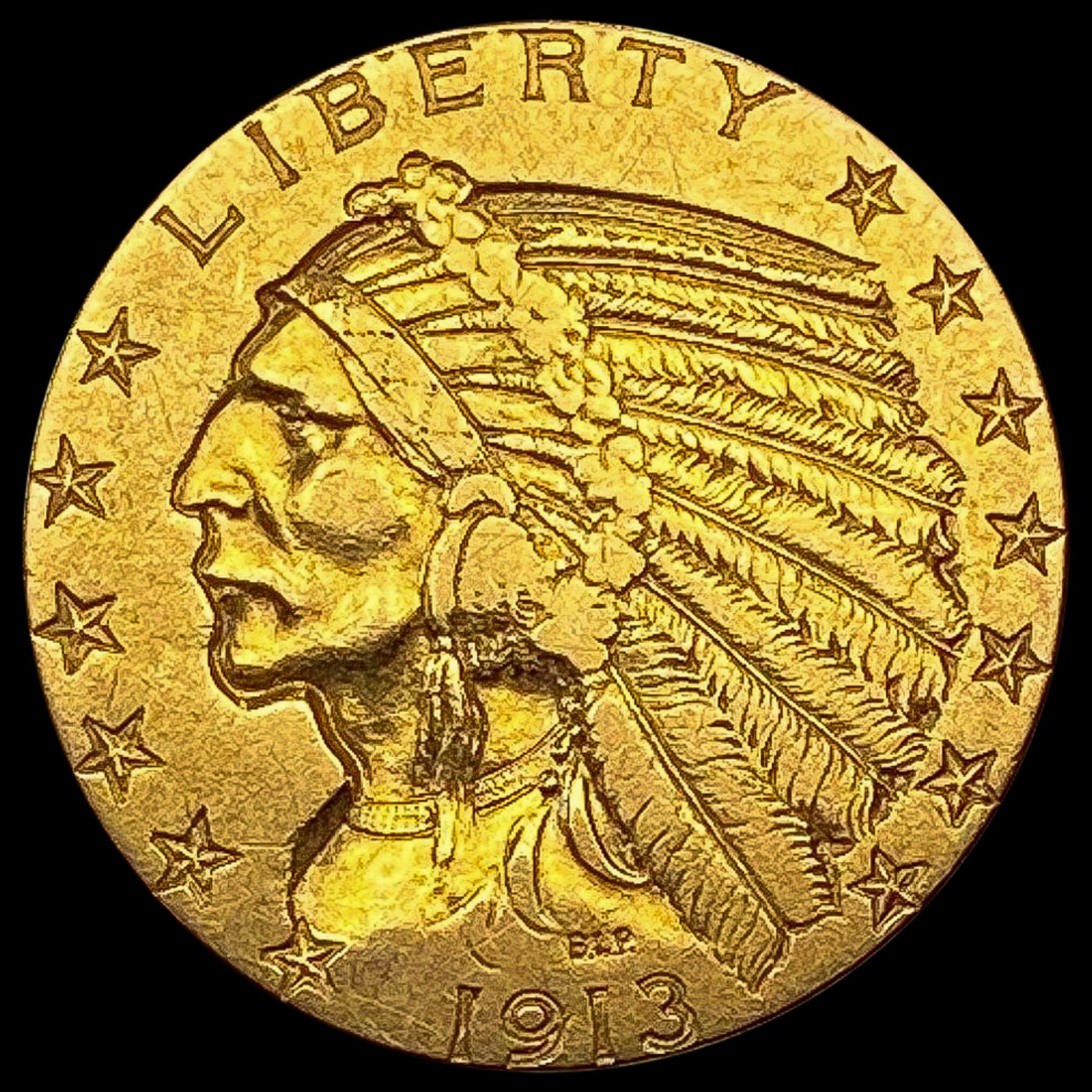 1913 Indian Head $5 Gold Half Eagle CLOSELY UNCIRCULATED