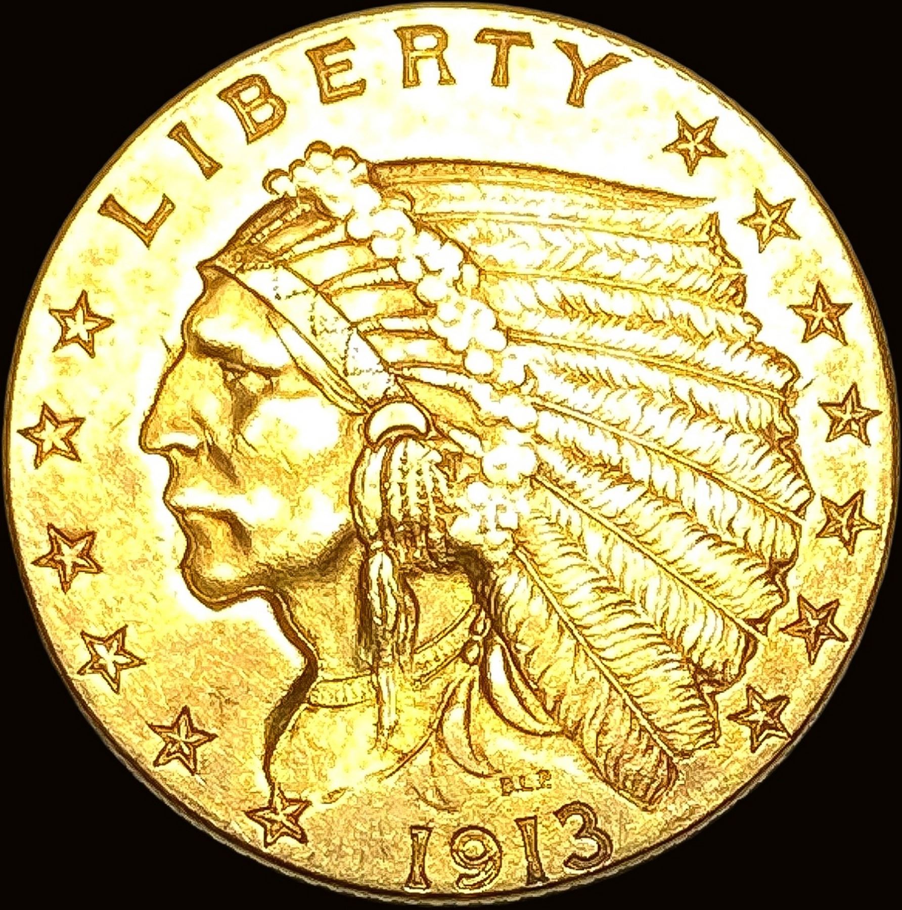1913 Indian Head Gold $2.50 Quarter Eagle CLOSELY UNCIRCULATED