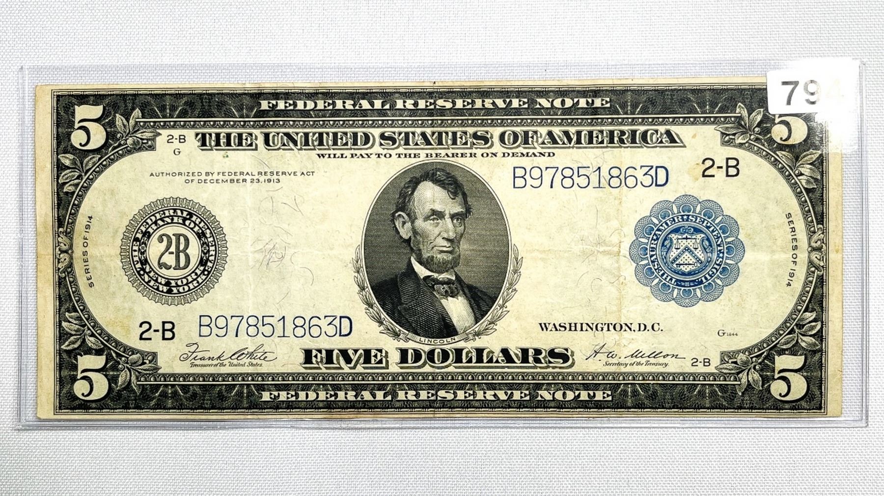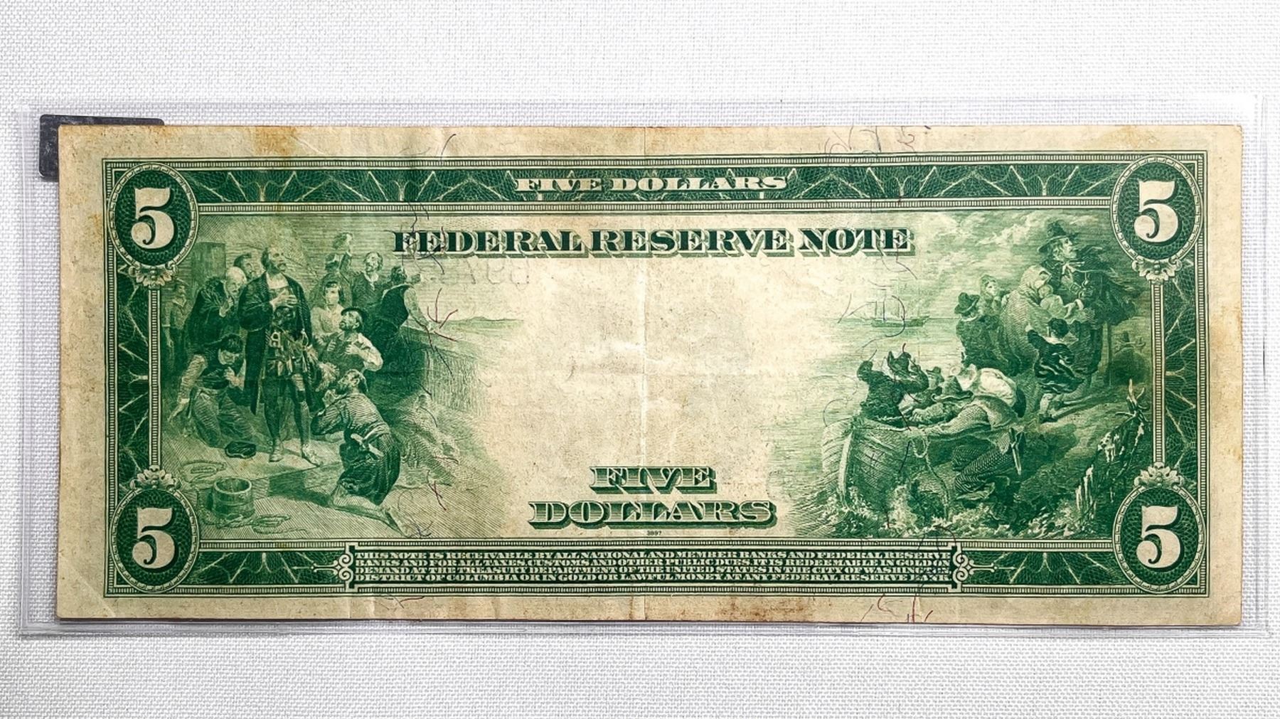 1913 LG $5 Federal Reserve Note CLOSELY UNC