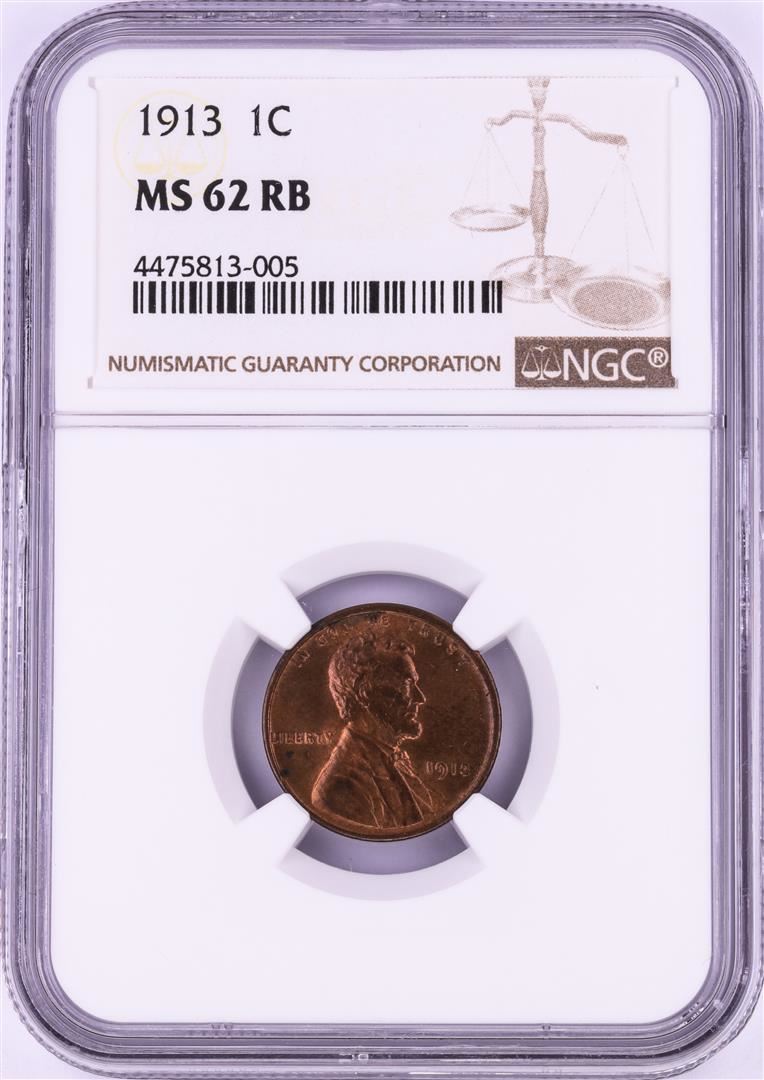 One 1913 Lincoln Wheat Cent Coin NGC MS62RB. NGC Certified.