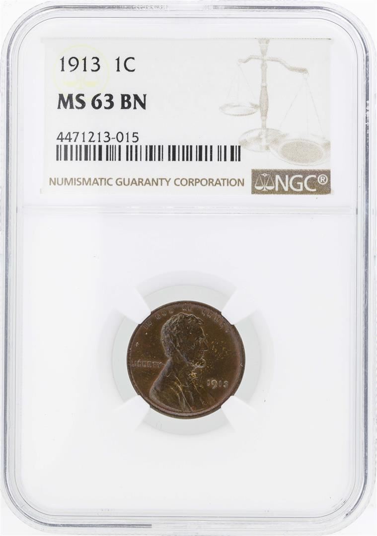 One 1913 Lincoln Wheat Penny Coin NGC MS63BN. NGC Certified.