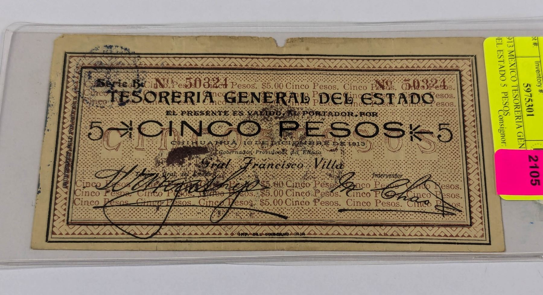 1913 MEXICO TESORERIA GENERAL DEL ESTADO 5 PESOS