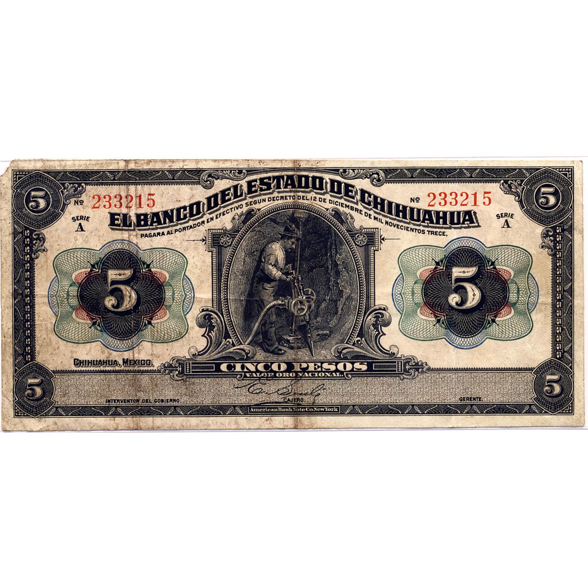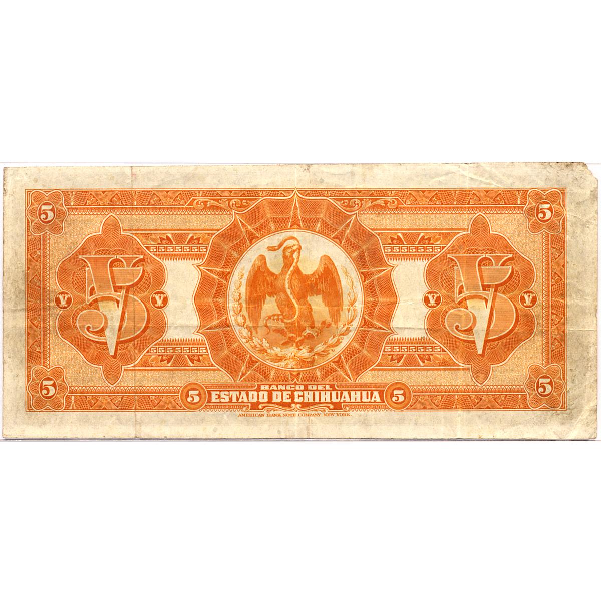 1913 Mexico S-132a Estado de Chihuahua 5 Pesos A