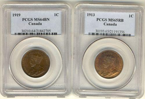 1913 PCGS MS65RB and 1919 PCGS MS64BN