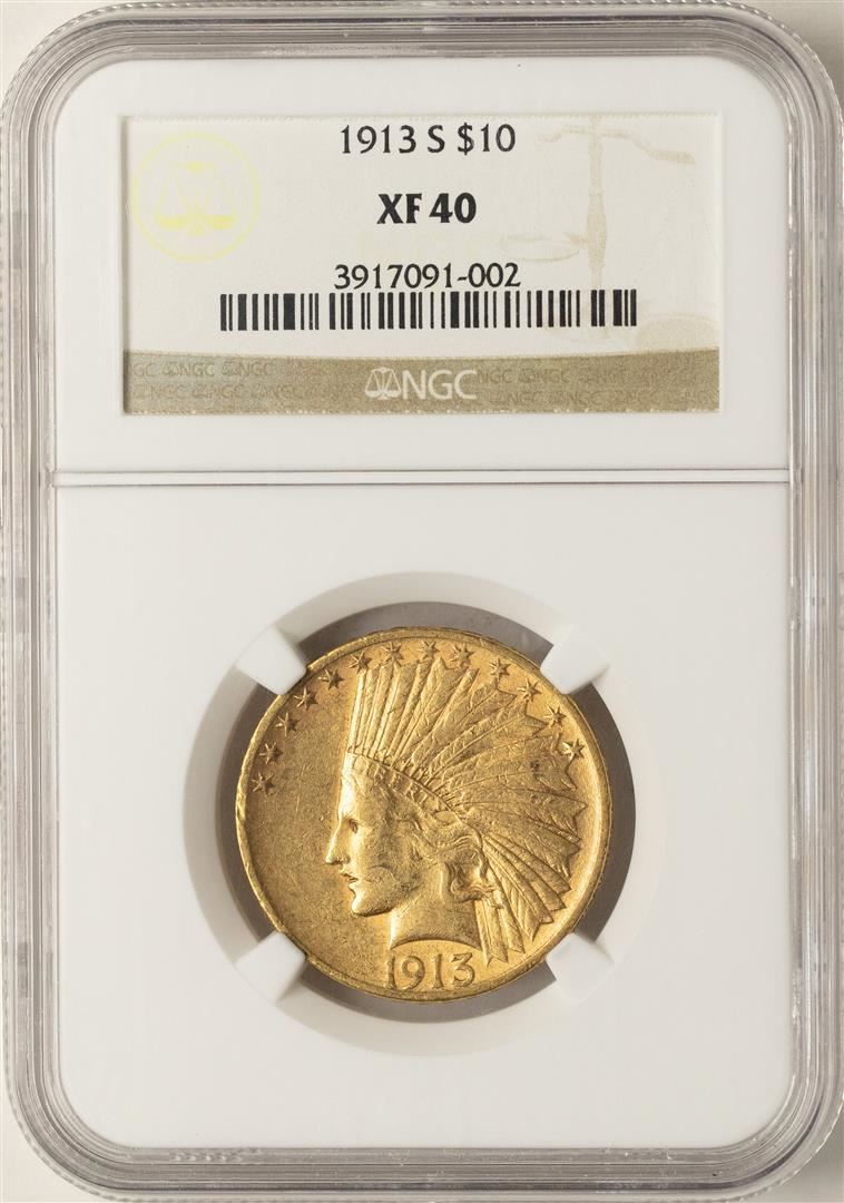 One 1913-S $10 Indian Head Eagle Gold Coin NGC XF40. NGC Certified.
