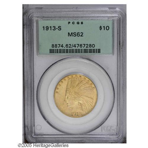 1913-S $10 MS62 PCGS. The 1913-S, with a mintage of 66 1913-S[$10] MS62 PCGS.