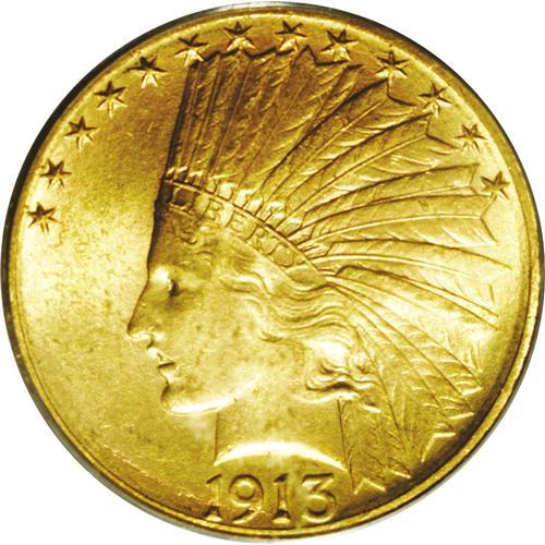 <B>1913-S<$10> MS64 PCGS.</B></I> There are few 20th century gold coins that are as rare as this date, especially when the higher grade levels are reached. The mintage of this issue was just 66,000 coins. This production total ranks 14th out of just 27 issues in the regular series of United States 20th century gold coins with mintages under 100,000 coins. The mintage is also the sixth lowest of the Indian Head design gold eagles (not counting the rare With Periods "pattern" coins).<BR> This date is one of the important condition rarities in the Indian eagle series. Although we have offered 227 different examples of the date for auction sale since January 1993, only 10 previous appearances were for MS64 grade examples, and only once did we offer a finer grade coin (which happened to be an MS67). David Akers noted that this date is essentially impossible to find in any Gem level grade.<BR> The example that we are offering here is a lovely Choice Mint State specimen with brilliant and frosty yellow-gold luster. All of the design elements are nicely detailed, although the top of the eagle's wing is a little flat as usual. The surfaces are impressive with only a few minor flaws that keep it from a Gem grade level. The obverse has a thin orange planchet lamination that was present at the time this coin was minted. Liberty's cheek and neck have a few grade-consistent ticks. Still and all, this is an exceptional example for the grade, and it is essentially the best quality available. Population: 13 in 64, 3 finer (4/06).