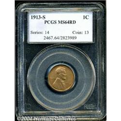 <B>1913-S<1C> MS64 Red PCGS.</B></I> Boldly struck, save for weakness on AME, on the lower reverse, with an orange-peel texture (as struck) seen on some of the reverse areas, and moderate, scattered carbon on both obverse and reverse, preventing the Gem grade assessment. Population: 102 in 64, 43 finer (7/04). <BR><BR><B>Important notice:</B> Heritage usually auctions material at the rate of 200-250 lots per hour. On some occasions eBay Live bid software or the Internet may not be able to keep up with the pace of the auction. We recommend placing a realistic absentee bid now as insurance to avoid disappointment. Occasionally the auctioneer may eliminate or reject an eBay Live bid, and the auctioneer may also reopen a lot after the close of the eBay live bidding (usually because we missed an audience bid), and may reject your bid even if it shows you as the winning bidder. By bidding via eBay Live, you agree that Heritage may award the lot to another bidder at its sole discretion under the circumstances described above or any other reasonable circumstances. Since eBay bids are not shown to us until we open the lot on the floor, we treat those bids just like floor bids. In most cases the floor responds before the eBay bid is presented to us, due to Internet lag time, so for consistency we have made it a policy that floor bids are always considered first over tie eBay live bids. Also please note that all Heritage lots purchased through eBay Live carry a 20% Buyer's Premium. Please make sure you read the Terms and Conditions before you bid. </span></font></tr></table></td></tr></table>