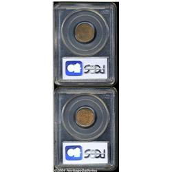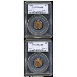 <B>1913-S<1C> MS64 Red and Brown PCGS,</B></I> well preserved with few marks for the grade and several minuscule carbon spots on the reverse; and a <B>1927-D MS64 Red PCGS,</B></I> free from the abrasions that are commonly seen on a near-Gem and showing an attractive ring of rainbow patination around the obverse and reverse peripheries. 2 Coins <BR><BR><B>Important notice:</B> Heritage usually auctions material at the rate of 200-250 lots per hour. On some occasions eBay Live bid software or the Internet may not be able to keep up with the pace of the auction. We recommend placing a realistic absentee bid now as insurance to avoid disappointment. Occasionally the auctioneer may eliminate or reject an eBay Live bid, and the auctioneer may also reopen a lot after the close of the eBay live bidding (usually because we missed an audience bid), and may reject your bid even if it shows you as the winning bidder. By bidding via eBay Live, you agree that Heritage may award the lot to another bidder at its sole discretion under the circumstances described above or any other reasonable circumstances. Since eBay bids are not shown to us until we open the lot on the floor, we treat those bids just like floor bids. In most cases the floor responds before the eBay bid is presented to us, due to Internet lag time, so for consistency we have made it a policy that floor bids are always considered first over tie eBay live bids. Also please note that all Heritage lots purchased through eBay Live carry a 20% Buyer's Premium. Please make sure you read the Terms and Conditions before you bid. </span></font></tr></table></td></tr></table>
