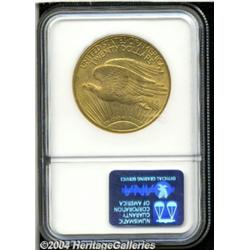 <B>1913-S<$20> MS61 NGC.</B></I> A slight milky glaze coats both sides of this lightly hairlined example that is more attractive than the MS61 grade would suggest. <BR><BR><B>Important notice:</B> Heritage usually auctions material at the rate of 200-250 lots per hour. On some occasions eBay Live bid software or the Internet may not be able to keep up with the pace of the auction. We recommend placing a realistic absentee bid now as insurance to avoid disappointment. Occasionally the auctioneer may eliminate or reject an eBay Live bid, and the auctioneer may also reopen a lot after the close of the eBay live bidding (usually because we missed an audience bid), and may reject your bid even if it shows you as the winning bidder. By bidding via eBay Live, you agree that Heritage may award the lot to another bidder at its sole discretion under the circumstances described above or any other reasonable circumstances. Since eBay bids are not shown to us until we open the lot on the floor, we treat those bids just like floor bids. In most cases the floor responds before the eBay bid is presented to us, due to Internet lag time, so for consistency we have made it a policy that floor bids are always considered first over tie eBay live bids. Also please note that all Heritage lots purchased through eBay Live carry a 20% Buyer's Premium. Please make sure you read the Terms and Conditions before you bid. </span></font></tr></table></td></tr></table>