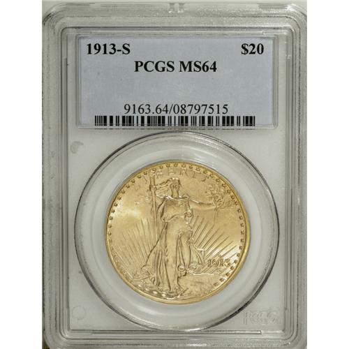 1913-S $20 MS64 PCGS. Its mintage of 34,000 pieces ens