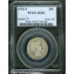 1913-S 25C AG3 PCGS. This key date is light gray, 1913-S 25C AG3 PCGS.