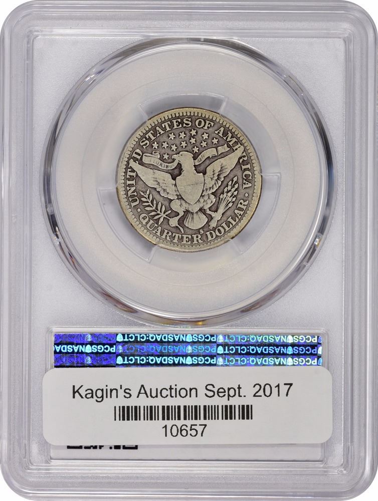 Warm silver grey throughout with deeper slate highlights in the protected areas. LI and TY in LIBERTY present. Mark-free and choice for the grade. One of just two dates in the series with a four-figure Guide Book value in the Good-4 column. This key issue saw a mintage of just 40,000 pieces, the lowest such tally among all Barber quarters. (Put another way, the San Francisco Mint only produced $10,000 face value in quarter dollars for the year). Don’t miss the opportunity this lot affords.
