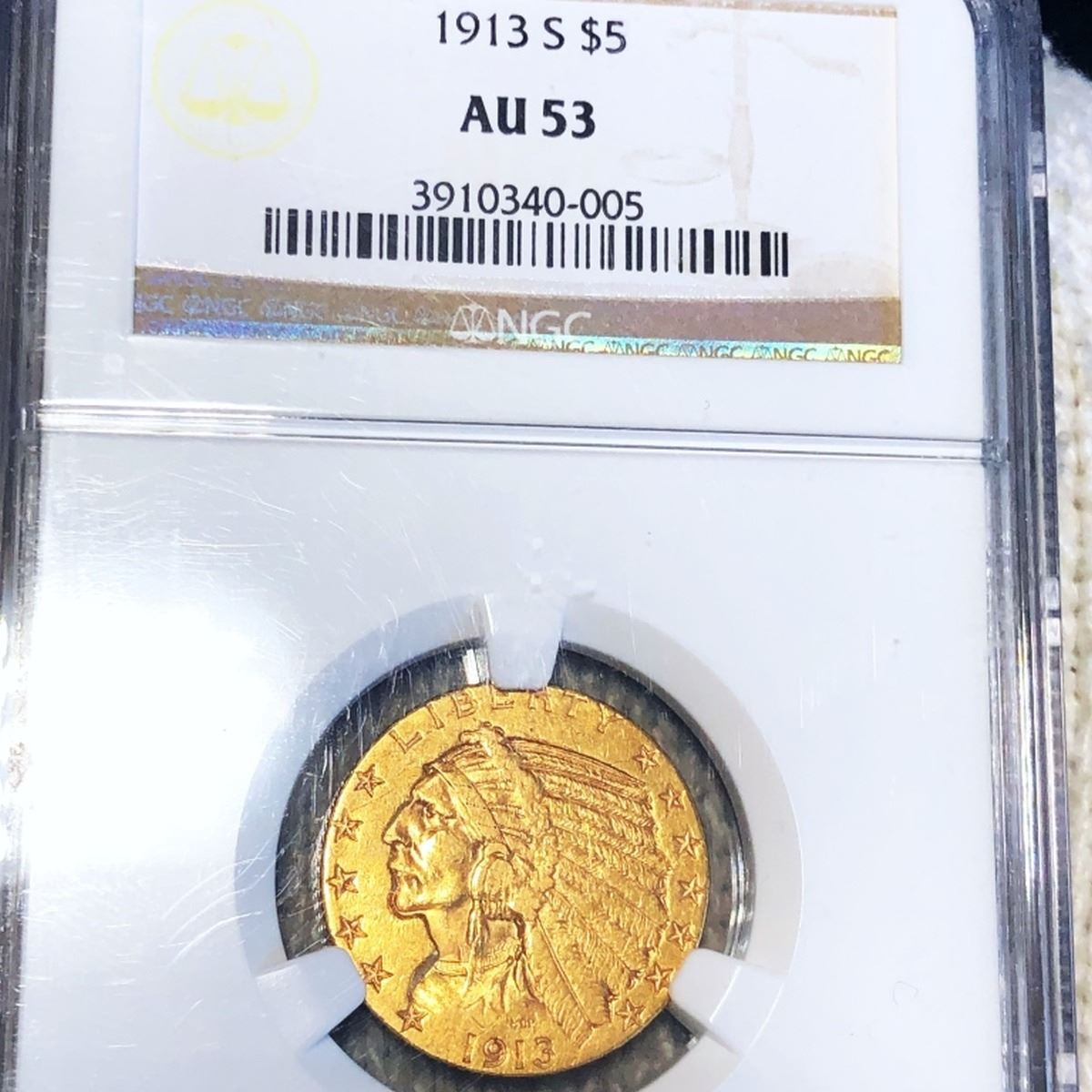 1913-S $5 Gold Half Eagle NGC - AU53