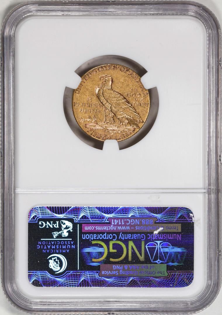 One 1913-S $5 Indian Head Half Eagle Gold Coin NGC AU53. NGC Certified.