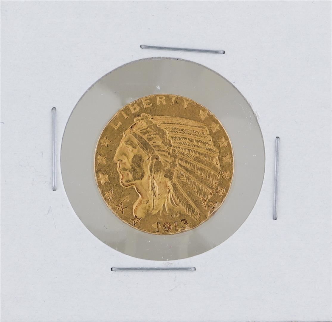 One 1913-S $5 Indian Head Half Eagle Gold Coin.