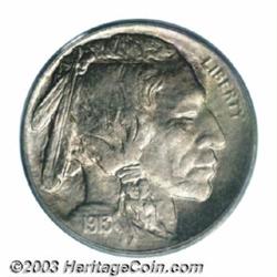 <table><tr><td><TABLE cellSpacing=0 cellPadding=0 width="100%" bgColor=#000000 border=0><TBODY> <TR><TD width="100%"><TABLE cellSpacing=1 cellPadding=3 width="100%" border=0><TBODY><TR><TD width="100%" bgColor=#79735c><FONT face=arial color=#ffffff size=3><B>Description</B> </FONT></TD></TR><TR><TD width="100%" bgColor=#ffffff><FONT face=arial size=2><B>1913-S 5C Type One MS66 PCGS.</B></I> This premium quality Gem is above average in striking quality for the issue. There is, nonetheless, a touch of peripheral softness that is most readily evident on the lower reverse, over the letters in FIVE, as well as on the mintmark. Both sides of the coin are uniformly toned by olive color, with golden highlights. There are no mentionable abrasions. In fact, the satiny, granular surfaces are seemingly mark-free and spot-free. The most conditionally challenging of the three Type One issues in the Buffalo Nickel series, the 1913-S is typically offered no finer than MS64. Population: 54 in 66, 9 finer (8/03). </FONT></TD></TR></TBODY></TABLE></TD></TR></TBODY></TABLE><BR><A name=PricesRealized></A><TABLE cellSpacing=0 cellPadding=0 width="100%" bgColor=#000000 border=0><TBODY><TR><TD width="100%"><TABLE cellSpacing=1 cellPadding=3 width="100%" border=0><TBODY><TR><TD width="100%" bgColor=#79735c><A name=PR><FONT face=arial color=#ffffff size=3><B>Previous Prices from Heritage Auctions</B> </FONT></A></TD></TR><TR><TD bgColor=#f6f6ed><TABLE cellSpacing=0 cellPadding=0 width="100%" border=1><TBODY><TR><TD align=middle width="33%"><B>Date</B></TD><TD align=middle width="33%"><B>Service</B></TD><TD align=middle width="33%"><B>Price</B></TD></TR><TR bgColor=whitesmoke><TD width="33%"><B>03/01/2003</B></TD><TD width="33%">PCGS</TD><TD width="33%">$1,322.50</TD></TR><TR bgColor=whitesmoke><TD width="33%"><B>09/28/2002</B></TD><TD width="33%">PCGS</TD><TD width="33%">$1,610.00</TD></TR><TR bgColor=whitesmoke><TD width="33%"><B>05/31/2001</B></TD><TD width="33%">PCGS</TD><TD width="33%">$1,150.00</TD></TR><TR bgColor=whitesmoke><TD width="33%"><B>02/13/1998</B></TD><TD width="33%">PCGS</TD><TD width="33%">$880.00</TD></TR><TR bgColor=whitesmoke><TD width="33%"><B>07/29/1997</B></TD><TD width="33%">PCGS</TD><TD width="33%">$880.00</TD></TR><TR bgColor=whitesmoke><TD width="33%"><B>03/16/1996</B></TD><TD width="33%">PCGS</TD><TD width="33%">$995.50</TD></TR><TR bgColor=whitesmoke><TD width="33%"><B>05/01/1996</B></TD><TD width="33%">PCGS</TD><TD width="33%">$1,073.00</TD></TR><TR bgColor=whitesmoke><TD width="33%"><B>09/01/1997</B></TD><TD width="33%">PCGS</TD><TD width="33%">$5,610.00</TD></TR><TR bgColor=whitesmoke><TD width="33%"><B>08/01/1999</B></TD><TD width="33%">PCGS</TD><TD width="33%">$920.00</TD></TR></TBODY></TABLE></TD></TR><TR><TD bgColor=#ffffff><FONT face=arial size=1 ?>PLEASE NOTE: All prices realized reflect the final hammer price PLUS the buyer's premium in auctions that charge a buyer's premium. Each item has a notation at the top of the listing indicating whether that lot included a buyer's premium. Example: A item that sells with a final hammer price of $100 and a 20% buyer's premium will display with a price realized of $120. All information listed is intended to be as accurate as possible, but errors are possible. Please use this guide carefully and inform us of any inaccuracies. </FONT></TD></TR></TBODY></TABLE></TD></TR></TBODY></TABLE><BR><TABLE cellSpacing=0 cellPadding=0 width="100%" bgColor=#000000 border=0><TBODY><TR><TD width="100%"><TABLE cellSpacing=1 cellPadding=3 width="100%" border=0><TBODY><TR><TD width="100%" bgColor=#79735c colSpan=6><FONT face=arial color=#ffffff size=3><B>Price Guide*</B> </FONT></TD></TR><TR bgColor=#f6f6ed><TD align=middle><B>Grade</B> </TD><TD align=middle><B>Coin World<BR>(Trends)</B> </TD><TD align=middle><B>Numismedia<BR>Retail</B> </TD><TD align=middle><B>Numismedia<BR>Wholesale</B> </TD><TD align=middle><B>Coin<BR>Universe</B> </TD><TD align=middle><B>Heritage<BR>Value Index</B> </TD></TR><TR bgColor=#ffffff><TD align=middle>65</TD><TD align=right>$700.00</TD><TD align=right>$630.00</TD><TD align=right>$500.00</TD><TD align=right>$690.00</TD><TD align=right>$474.63</TD></TR><TR style="FONT-WEIGHT: bold" bgColor=#cccfdd><TD align=middle>66</TD><TD align=right>$1,850.00</TD><TD align=right>---</TD><TD align=right>$1,275.00</TD><TD align=right>$2,000.00</TD><TD align=right>$1,348.33</TD></TR><TR bgColor=#ffffff><TD align=middle>67</TD><TD align=right>---</TD><TD align=right>---</TD><TD align=right>$3,825.00</TD><TD align=right>$6,250.00</TD><TD align=right>$4,375.00</TD></TR><TR bgColor=#ffffff><TD colSpan=6><FONT size=1>*All information listed is intended to be as accurate as possible, but errors are possible. No item may be returned or refused based on this information which is provided as a service to our customers. You should contact each pricing source directly to determine the accuracy of this information. </FONT></TD></TR></TBODY></TABLE></TD></TR></TBODY></TABLE><BR><TABLE cellSpacing=0 cellPadding=0 width="100%" bgColor=#000000 border=0><TBODY><TR><TD width="100%"><TABLE cellSpacing=1 cellPadding=3 width="100%" border=0><TBODY><TR><TD width="100%" bgColor=#79735c><FONT face=arial color=#ffffff size=3><B>Population Guide</B> </FONT></TD></TR><TR bgColor=#ffffff><TD align=middle><!-- Begin Output of Population Grid--><TABLE cellSpacing=0 cellPadding=0 width="100%" border=0><TBODY><TR><TD vAlign=center><TABLE cellSpacing=0 width="100%" border=1 cellsadding="3"><TBODY><TR><TD vAlign=center><TABLE cellSpacing=0 cellPadding=3 width="100%" border=1><TBODY><TR><TD vAlign=center align=middle bgColor=#f0f1e8 colSpan=2 <CENTER><FONT face=Arial size=2><B>PCGS Pop </B></FONT><CENTER></CENTER></TD><TD vAlign=center align=middle bgColor=#f0f1e8 colSpan=2><CENTER><FONT face=Arial size=2><B>NGC Pop</B></CENTER></FONT></TD></TR><TR><TD vAlign=center><FONT face=Arial size=2>(66)</FONT> </TD><TD vAlign=center align=right><FONT face=Arial size=2>57</FONT> </TD>