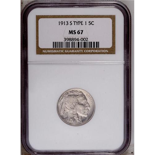 1913-S 5C Type One MS67 NGC. A highly lustrous, Superb 1913-S[5C] Type One MS67 NGC.