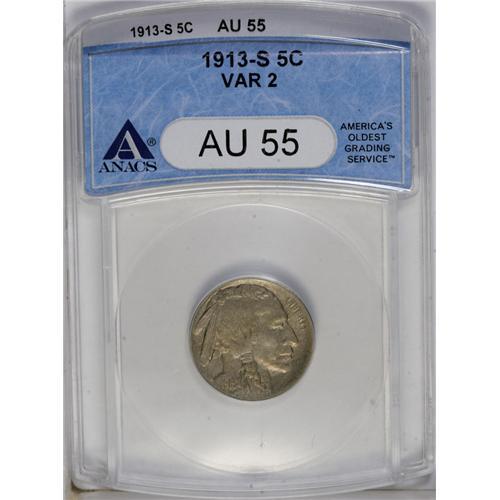 1913-S 5C Type Two AU55 ANACS. Choice, with only light