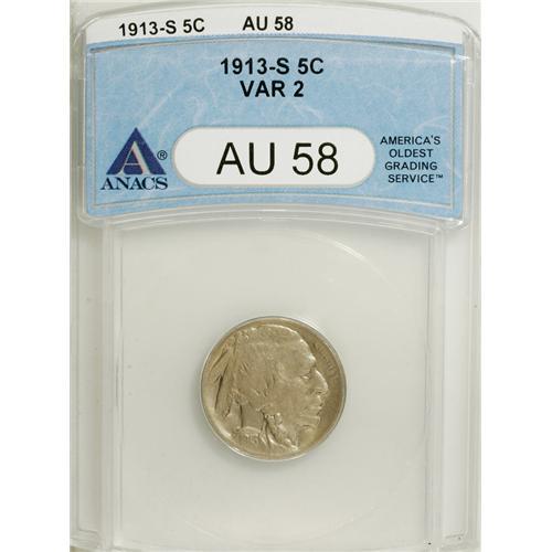 1913-S 5C Type Two AU58 ANACS. NGC Census: (262/11