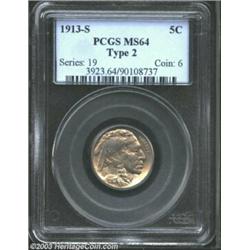 <TR><TD width="100%"><TABLE cellSpacing=1 cellPadding=3 width="100%" border=0><TBODY><TR><TD width="100%" bgColor=#79735c><FONT face=arial color=#ffffff size=3><B>Description</B> </FONT></TD></TR><TR><TD width="100%" bgColor=#ffffff><FONT face=arial size=2><B>1913-S 5C Type Two MS64 PCGS.</B></I> Better struck than most examples of this often weak date, some light toning is seen on each side. This is the key date among the six varieties of 1913 Buffalo nickels. </FONT></TD></TR></TBODY></TABLE></TD></TR></TBODY></TABLE><BR><A name=PricesRealized></A><TABLE cellSpacing=0 cellPadding=0 width="100%" bgColor=#000000 border=0><TBODY><TR><TD width="100%"><TABLE cellSpacing=1 cellPadding=3 width="100%" border=0><TBODY><TR><TD width="100%" bgColor=#79735c><A name=PR><FONT face=arial color=#ffffff size=3><B>Previous Prices from Heritage Auctions</B> </FONT></A></TD></TR><TR><TD bgColor=#f6f6ed><TABLE cellSpacing=0 cellPadding=0 width="100%" border=1><TBODY><TR><TD align=middle width="33%"><B>Date</B></TD><TD align=middle width="33%"><B>Service</B></TD><TD align=middle width="33%"><B>Price</B></TD></TR><TR bgColor=whitesmoke><TD width="33%"><B>08/05/2000</B></TD><TD width="33%">PCGS</TD><TD width="33%">$833.75</TD></TR><TR bgColor=whitesmoke><TD width="33%"><B>08/05/2000</B></TD><TD width="33%">PCGS</TD><TD width="33%">$833.75</TD></TR><TR bgColor=whitesmoke><TD width="33%"><B>04/02/1993</B></TD><TD width="33%">PCGS</TD><TD width="33%">$550.00</TD></TR><TR bgColor=whitesmoke><TD width="33%"><B>04/02/1993</B></TD><TD width="33%">PCGS</TD><TD width="33%">$550.00</TD></TR><TR bgColor=whitesmoke><TD width="33%"><B>01/07/2000</B></TD><TD width="33%">PCGS</TD><TD width="33%">$920.00</TD></TR><TR bgColor=whitesmoke><TD width="33%"><B>01/07/2000</B></TD><TD width="33%">PCGS</TD><TD width="33%">$920.00</TD></TR><TR bgColor=whitesmoke><TD width="33%"><B>08/13/1999</B></TD><TD width="33%">PCGS</TD><TD width="33%">$1,063.75</TD></TR><TR bgColor=whitesmoke><TD width="33%"><B>08/13/1999</B></TD><TD width="33%">PCGS</TD><TD width="33%">$1,063.75</TD></TR><TR bgColor=whitesmoke><TD width="33%"><B>07/29/1997</B></TD><TD width="33%">PCGS</TD><TD width="33%">$797.50</TD></TR><TR bgColor=whitesmoke><TD width="33%"><B>07/29/1997</B></TD><TD width="33%">PCGS</TD><TD width="33%">$797.50</TD></TR><TR bgColor=whitesmoke><TD width="33%"><B>01/10/1998</B></TD><TD width="33%">PCGS</TD><TD width="33%">$805.00</TD></TR><TR bgColor=whitesmoke><TD width="33%"><B>01/10/1998</B></TD><TD width="33%">PCGS</TD><TD width="33%">$805.00</TD></TR><TR bgColor=whitesmoke><TD width="33%"><B>02/11/2000</B></TD><TD width="33%">PCGS</TD><TD width="33%">$920.00</TD></TR><TR bgColor=whitesmoke><TD width="33%"><B>02/11/2000</B></TD><TD width="33%">PCGS</TD><TD width="33%">$920.00</TD></TR><TR bgColor=whitesmoke><TD width="33%"><B>08/17/1996</B></TD><TD width="33%">PCGS</TD><TD width="33%">$990.00</TD></TR><TR bgColor=whitesmoke><TD width="33%"><B>08/17/1996</B></TD><TD width="33%">PCGS</TD><TD width="33%">$990.00</TD></TR><TR bgColor=whitesmoke><TD width="33%"><B>03/01/2000</B></TD><TD width="33%">PCGS</TD><TD width="33%">$1,093.00</TD></TR><TR bgColor=whitesmoke><TD width="33%"><B>03/01/2000</B></TD><TD width="33%">PCGS</TD><TD width="33%">$1,093.00</TD></TR><TR bgColor=whitesmoke><TD width="33%"><B>11/01/1999</B></TD><TD width="33%">PCGS</TD><TD width="33%">$1,351.00</TD></TR><TR bgColor=whitesmoke><TD width="33%"><B>11/01/1999</B></TD><TD width="33%">PCGS</TD><TD width="33%">$1,351.00</TD></TR><TR bgColor=whitesmoke><TD width="33%"><B>11/01/1997</B></TD><TD width="33%">PCGS</TD><TD width="33%">$715.00</TD></TR><TR bgColor=whitesmoke><TD width="33%"><B>11/01/1997</B></TD><TD width="33%">PCGS</TD><TD width="33%">$715.00</TD></TR><TR bgColor=whitesmoke><TD width="33%"><B>04/11/1997</B></TD><TD width="33%">NGC</TD><TD width="33%">$577.50</TD></TR><TR bgColor=whitesmoke><TD width="33%"><B>04/11/1997</B></TD><TD width="33%">NGC</TD><TD width="33%">$577.50</TD></TR><TR bgColor=whitesmoke><TD width="33%"><B>03/01/1996</B></TD><TD width="33%">NGC</TD><TD width="33%">$798.00</TD></TR><TR bgColor=whitesmoke><TD width="33%"><B>03/01/1996</B></TD><TD width="33%">NGC</TD><TD width="33%">$798.00</TD></TR><TR bgColor=whitesmoke><TD width="33%"><B>11/01/1999</B></TD><TD width="33%">NGC</TD><TD width="33%">$805.00</TD></TR><TR bgColor=whitesmoke><TD width="33%"><B>11/01/1999</B></TD><TD width="33%">NGC</TD><TD width="33%">$805.00</TD></TR><TR bgColor=whitesmoke><TD width="33%"><B>03/01/2000</B></TD><TD width="33%">NGC</TD><TD width="33%">$690.00</TD></TR><TR bgColor=whitesmoke><TD width="33%"><B>03/01/2000</B></TD><TD width="33%">NGC</TD><TD width="33%">$690.00</TD></TR><TR bgColor=whitesmoke><TD width="33%"><B>04/11/1997</B></TD><TD width="33%">ANACS</TD><TD width="33%">$632.50</TD></TR><TR bgColor=whitesmoke><TD width="33%"><B>04/11/1997</B></TD><TD width="33%">ANACS</TD><TD width="33%">$632.50</TD></TR><TR bgColor=whitesmoke><TD width="33%"><B>01/05/2001</B></TD><TD width="33%">PCGS</TD><TD width="33%">$977.50</TD></TR><TR bgColor=whitesmoke><TD width="33%"><B>01/05/2001</B></TD><TD width="33%">PCGS</TD><TD width="33%">$977.50</TD></TR><TR bgColor=whitesmoke><TD width="33%"><B>05/03/2003</B></TD><TD width="33%">PCGS</TD><TD width="33%">$1,092.50</TD></TR><TR bgColor=whitesmoke><TD width="33%"><B>05/03/2003</B></TD><TD width="33%">PCGS</TD><TD width="33%">$1,092.50</TD></TR><TR bgColor=whitesmoke><TD width="33%"><B>09/28/2002</B></TD><TD width="33%">NGC</TD><TD width="33%">$920.00</TD></TR><TR bgColor=whitesmoke><TD width="33%"><B>09/28/2002</B></TD><TD width="33%">NGC</TD><TD width="33%">$920.00</TD></TR><TR bgColor=whitesmoke><TD width="33%"><B>01/11/2003</B></TD><TD width="33%">PCGS</TD><TD width="33%">$2,070.00</TD></TR><TR bgColor=whitesmoke><TD width="33%"><B>01/11/2003</B></TD><TD width="33%">PCGS</TD><TD width="33%">$2,070.00</TD></TR><TR bgColor=whitesmoke><TD width="33%"><B>02/16/2000</B></TD><TD width="33%">PCGS</TD><TD width="33%">$891.00</TD></TR