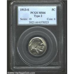 1913-S 5C Type Two MS66 PCGS. This is the rarest of the six 1913-dated issues in the Buffalo Nickel.