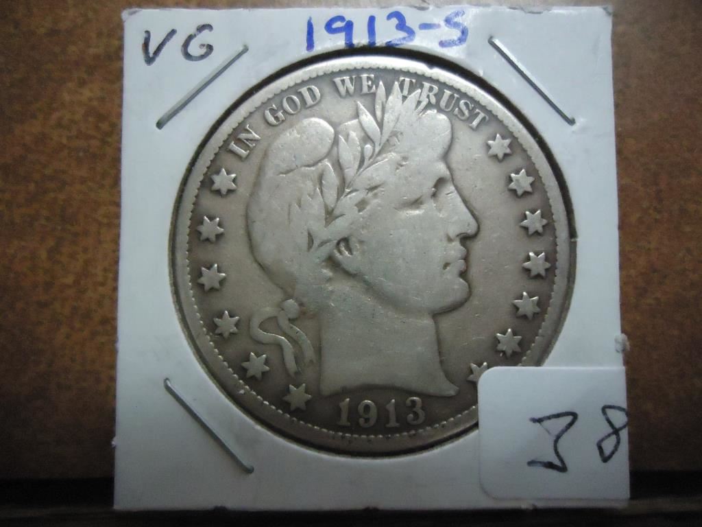 1913-S BARBER HALF DOLLAR VERY GOOD