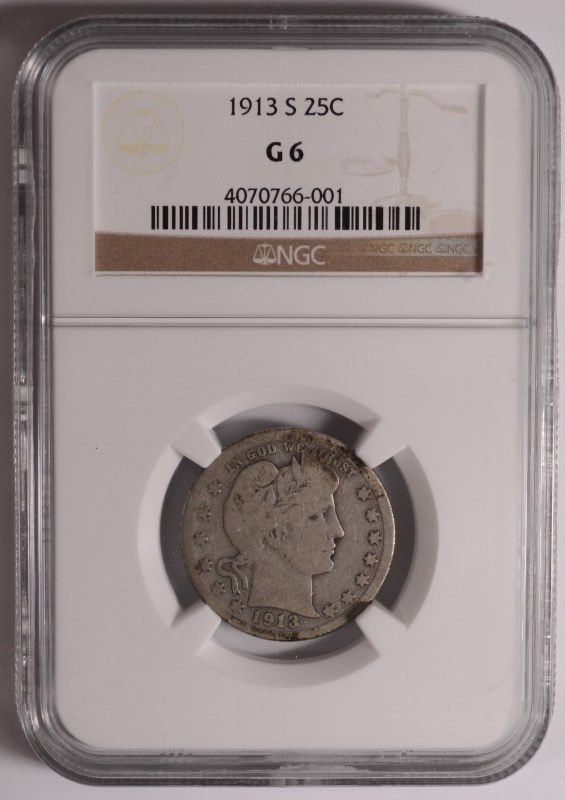 THE LOWEST ( 40,000 ) MINTAGE AND KEY TO THE BARBER QUARTER SERIES, ESTIMATE $1700.00 TO $1875.00