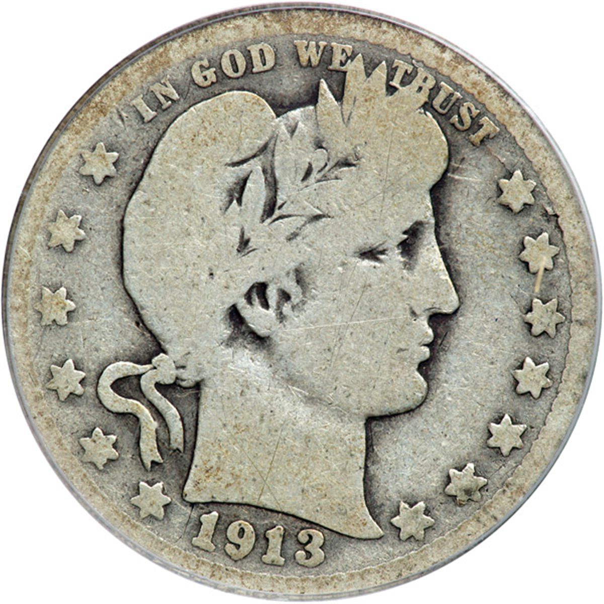 1913-S Barber Quarter Dollar. CAC Approved. Complete date and clear mint mark; all, lightly toned. Since there were only 40,000 minted, the 1913-S has the distinction of being one of the rarest Barber quarters in the set. Actively pursued by collectors (PCGS # 5666) .