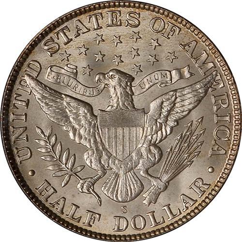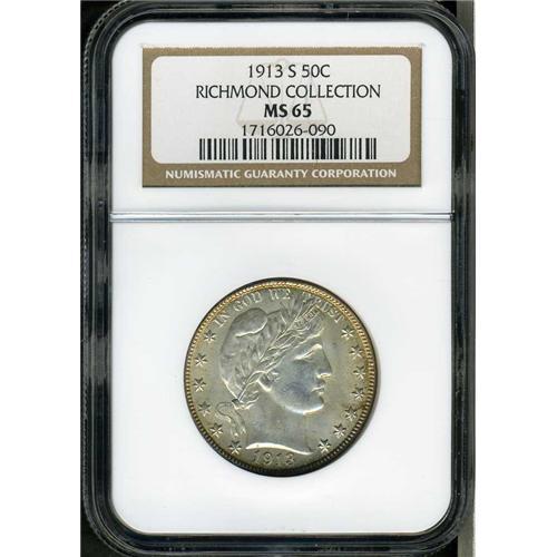 With a small mintage of 604,000 from the San Francisco Mint, this lightly toned original half dollar with an excellent strike is from the Richmond Collection. The coin Bids in this grade $4000 and trends $5000.