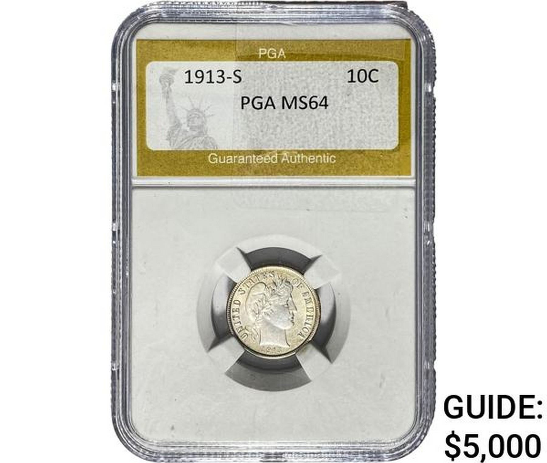 1913-S Barber Dime PGA MS64