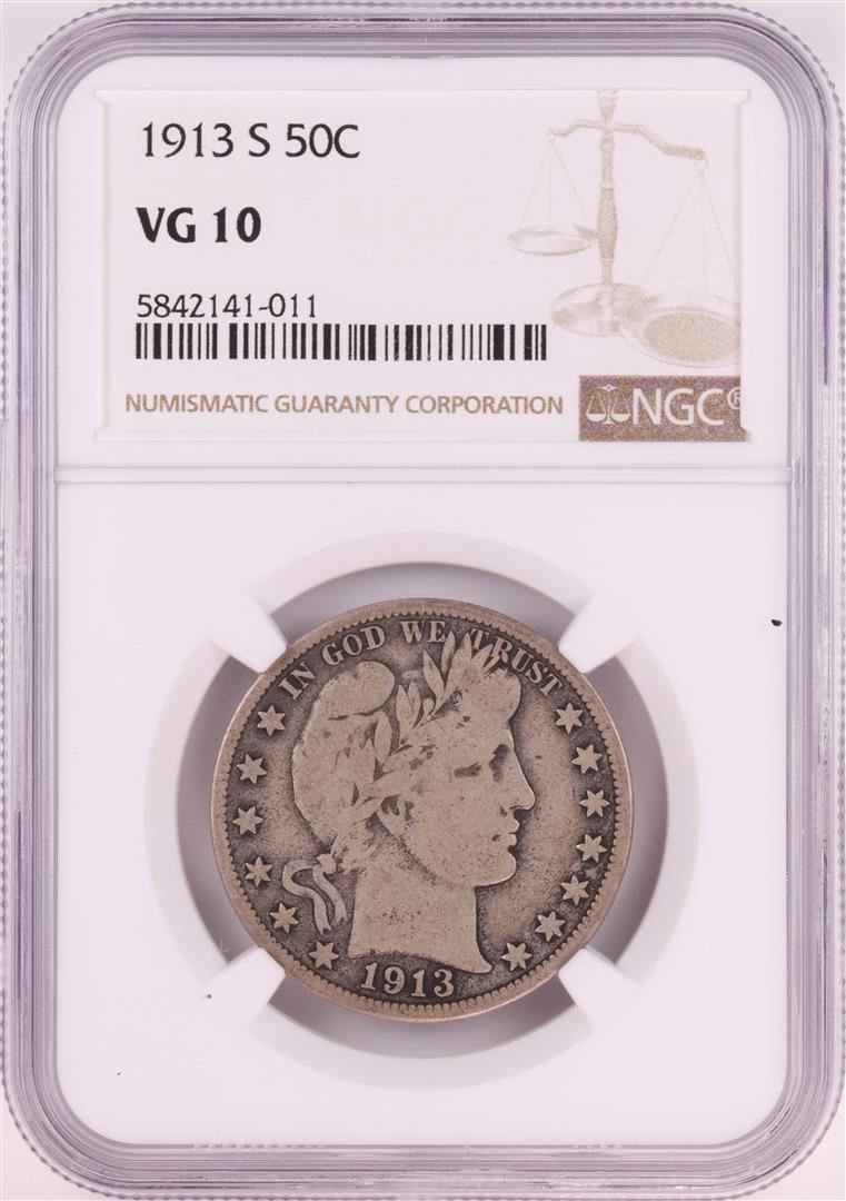 One 1913-S Barber Half Dollar Coin NGC V10. NGC Certified.
