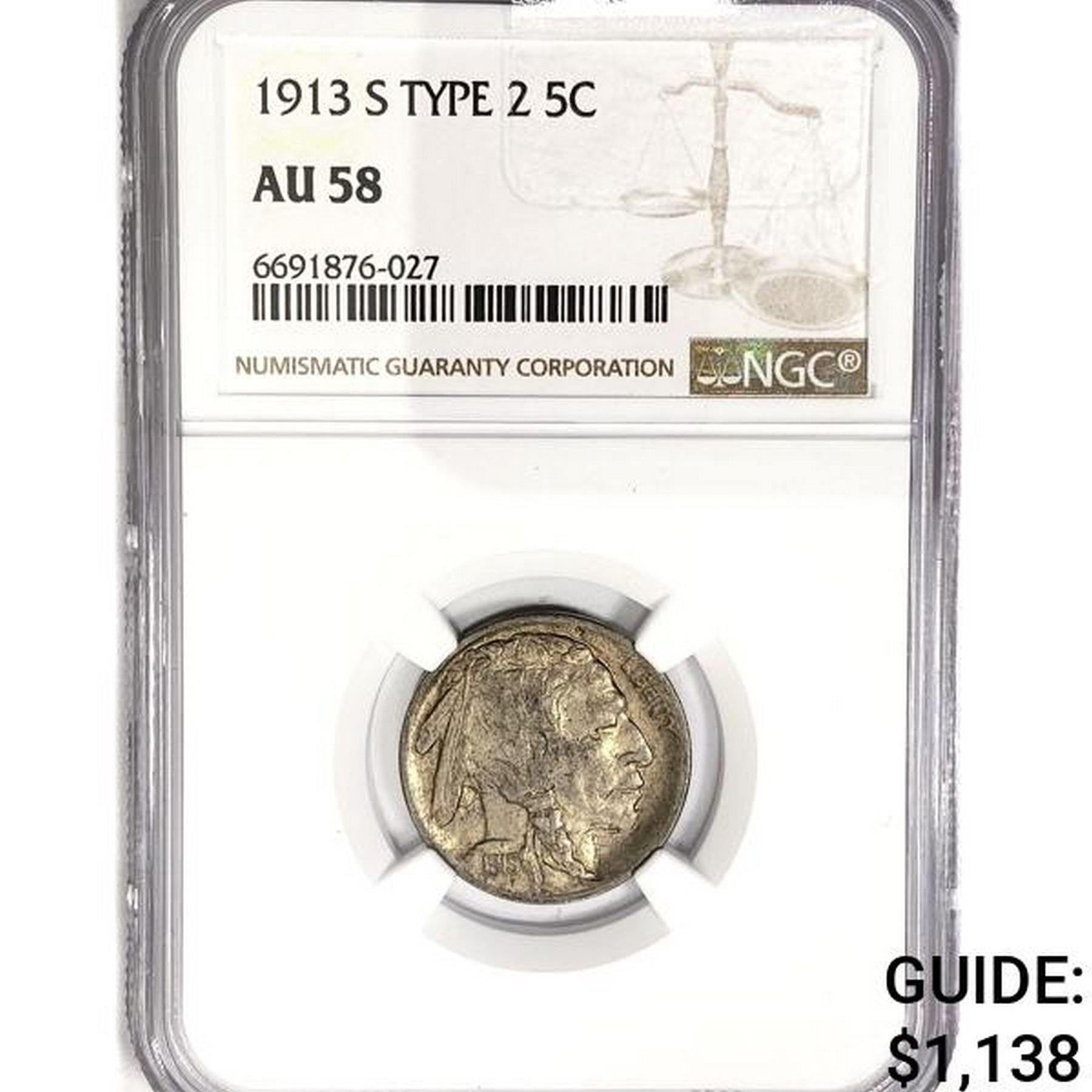 1913-S Buffalo Nickel NGC AU58 Type 2