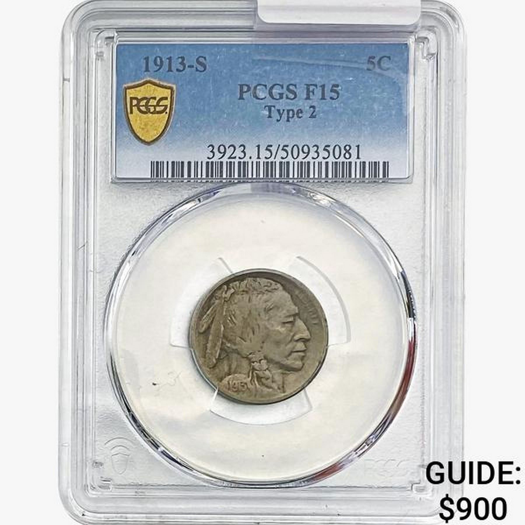 1913-S Buffalo Nickel PCGS F15 Type 2