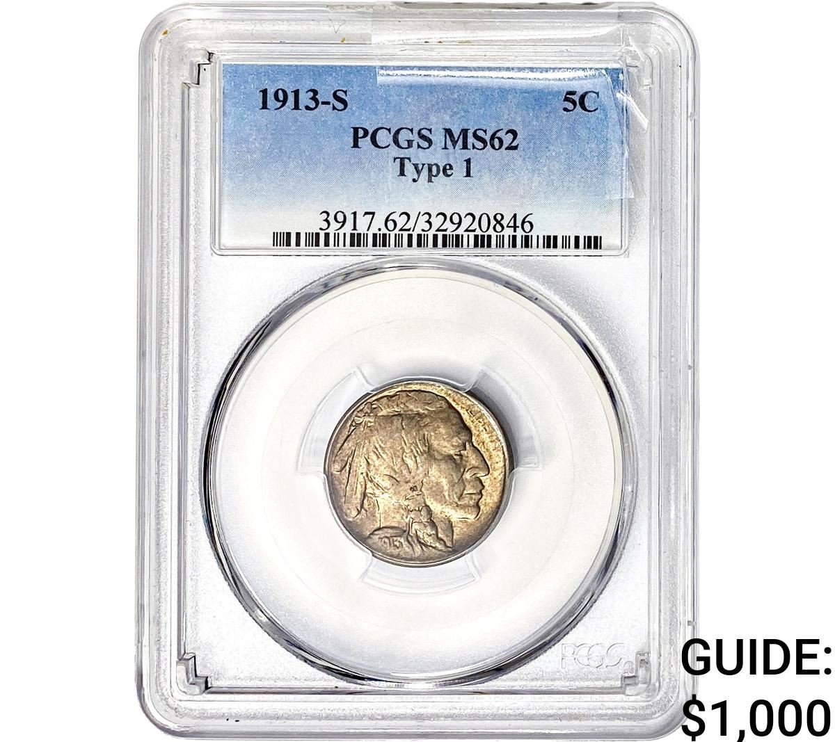 1913-S Buffalo Nickel PCGS MS62 Type 1
