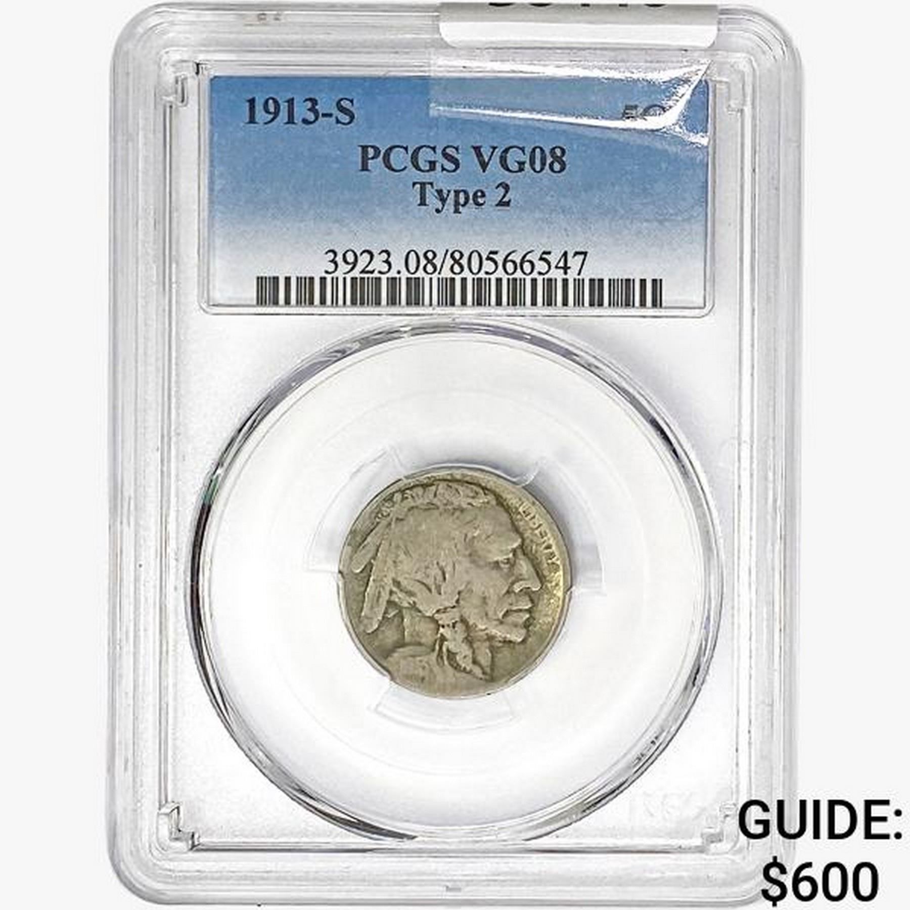 1913-S Buffalo Nickel PCGS VG08 Type 2