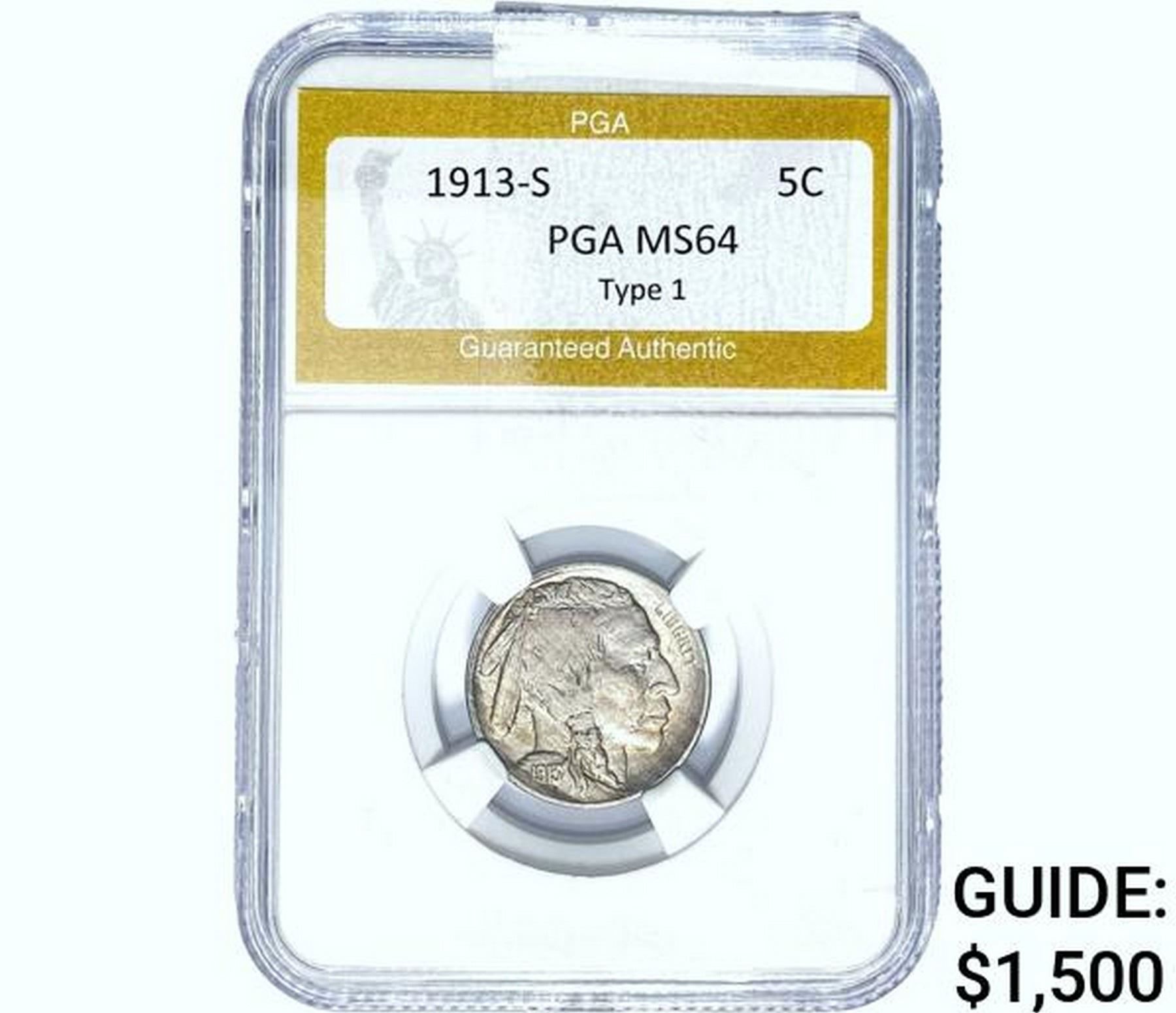 1913-S Buffalo Nickel PGA MS64 TY 1