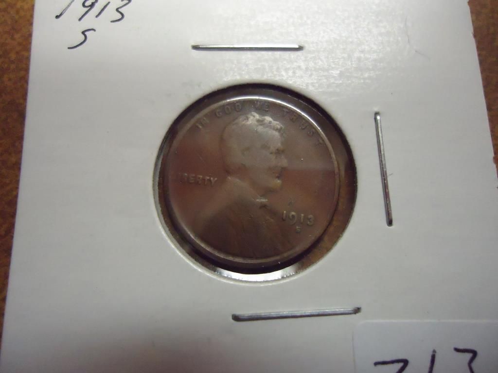 1913-S LINCOLN CENT SEMI KEY (VERY GOOD)