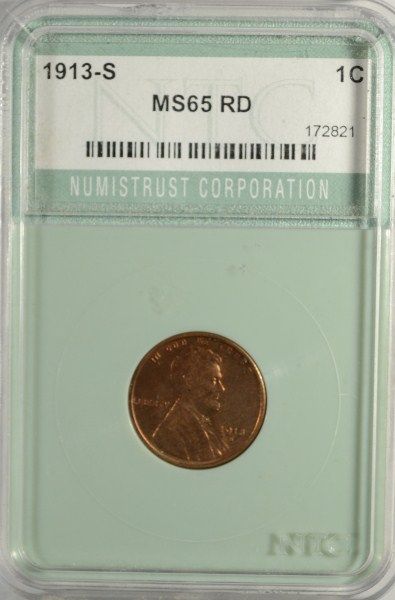 1913-S LINCOLN ONE CENT NTC MS65 RED, LOOKS 64 TO US, BUT STILL A NICE COIN