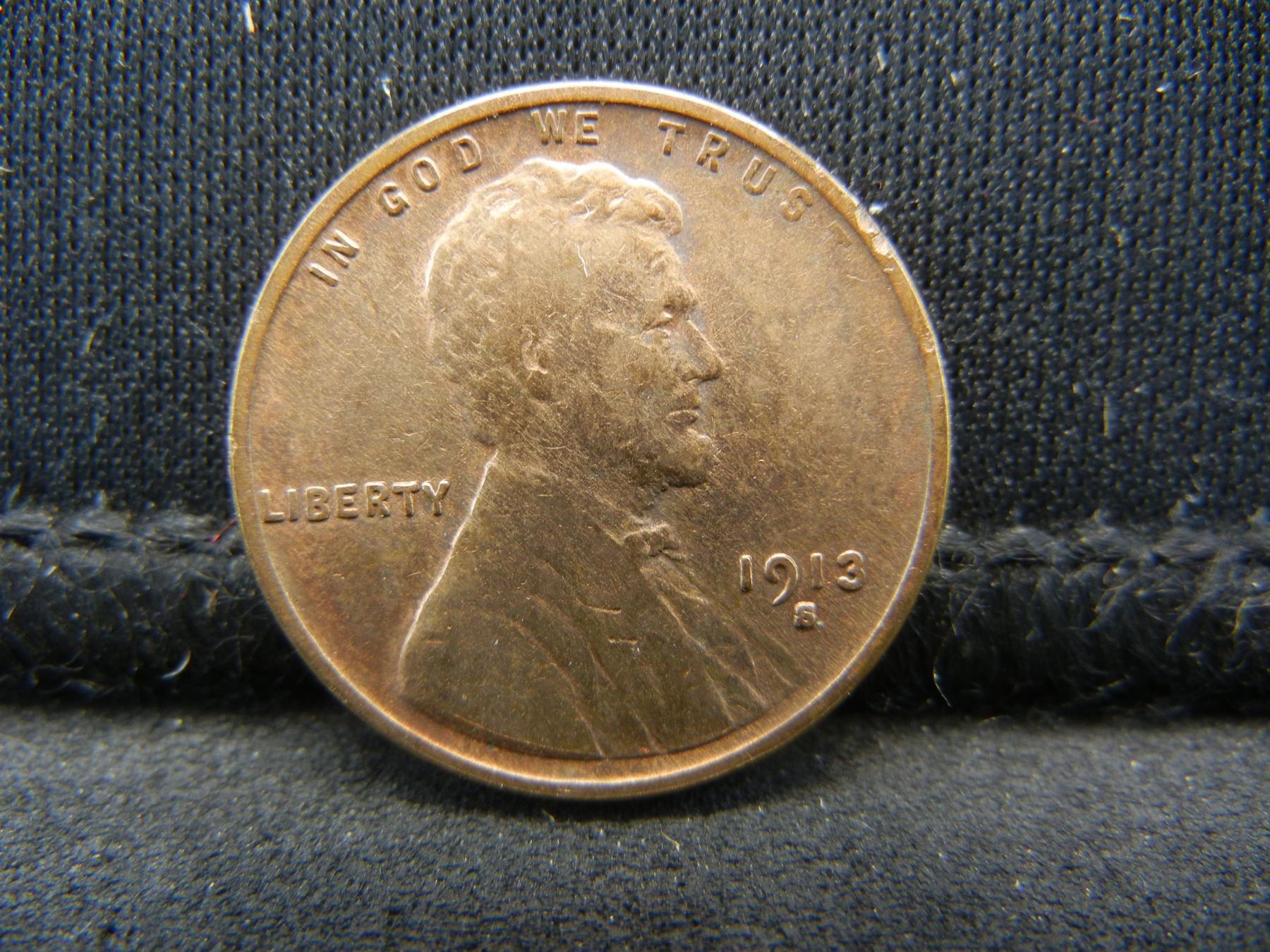 1913-S Semi-Key Date Lincoln Head Cent.