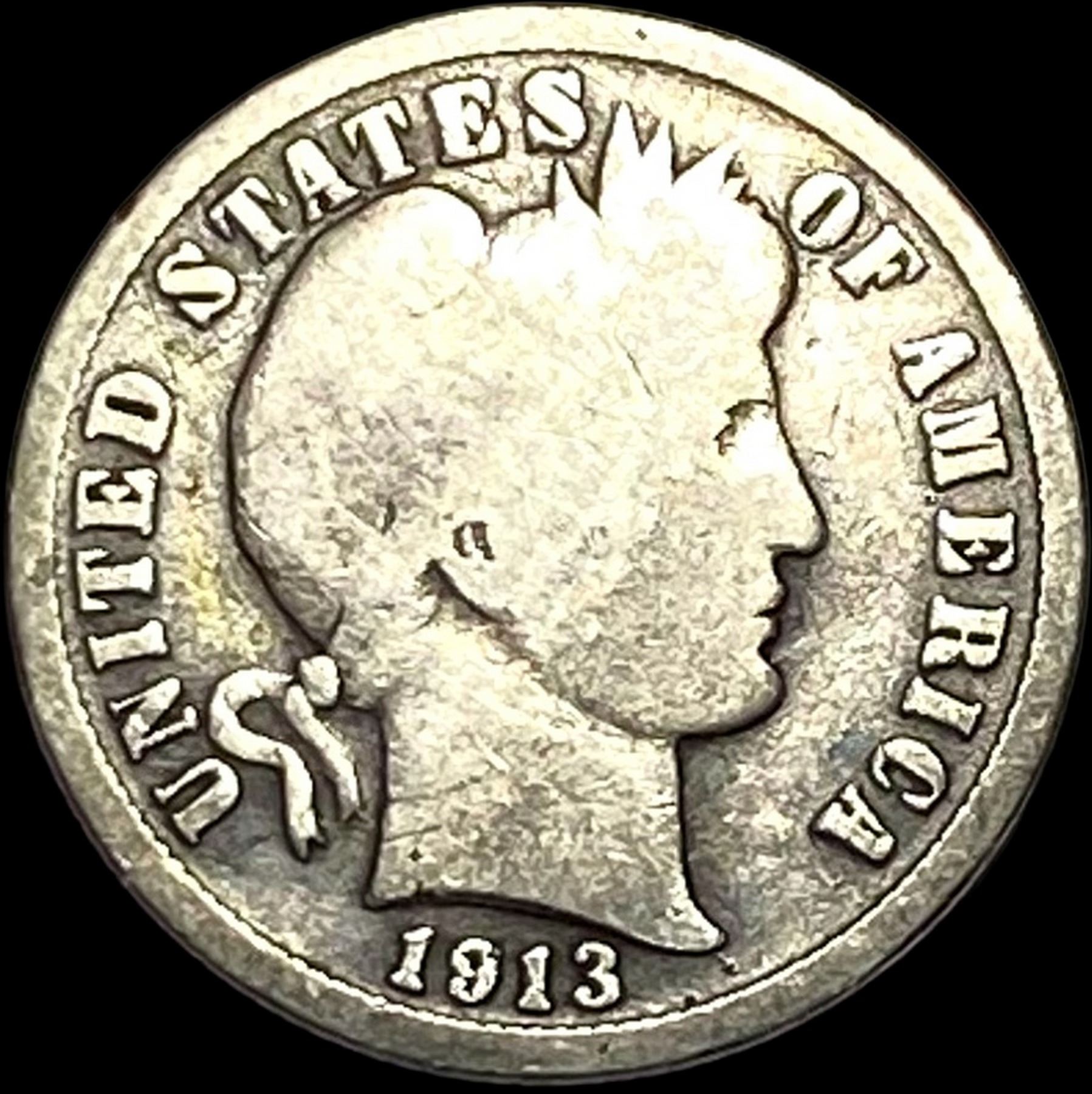1913-S Silver Barber Dime NICELY CIRCULATED