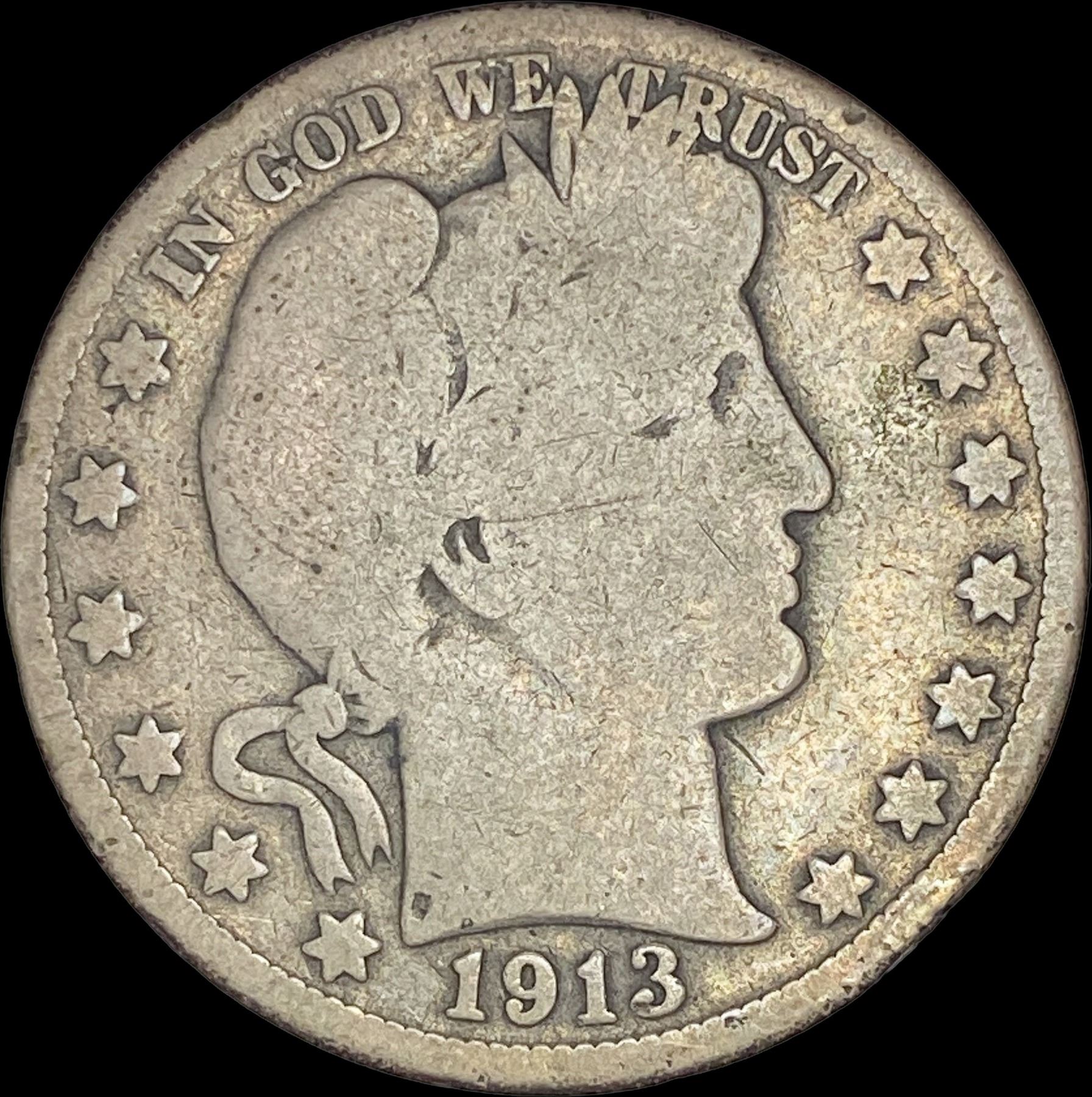 1913-S Silver Barber Half Dollar NICELY CIRCULATED