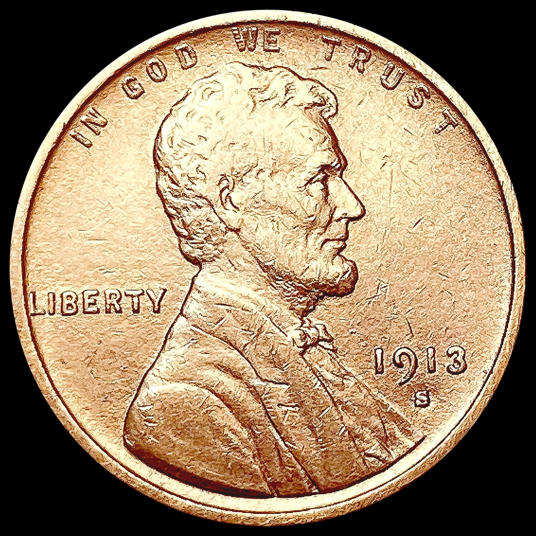 1913-S Wheat Cent CLOSELY UNCIRCULATED