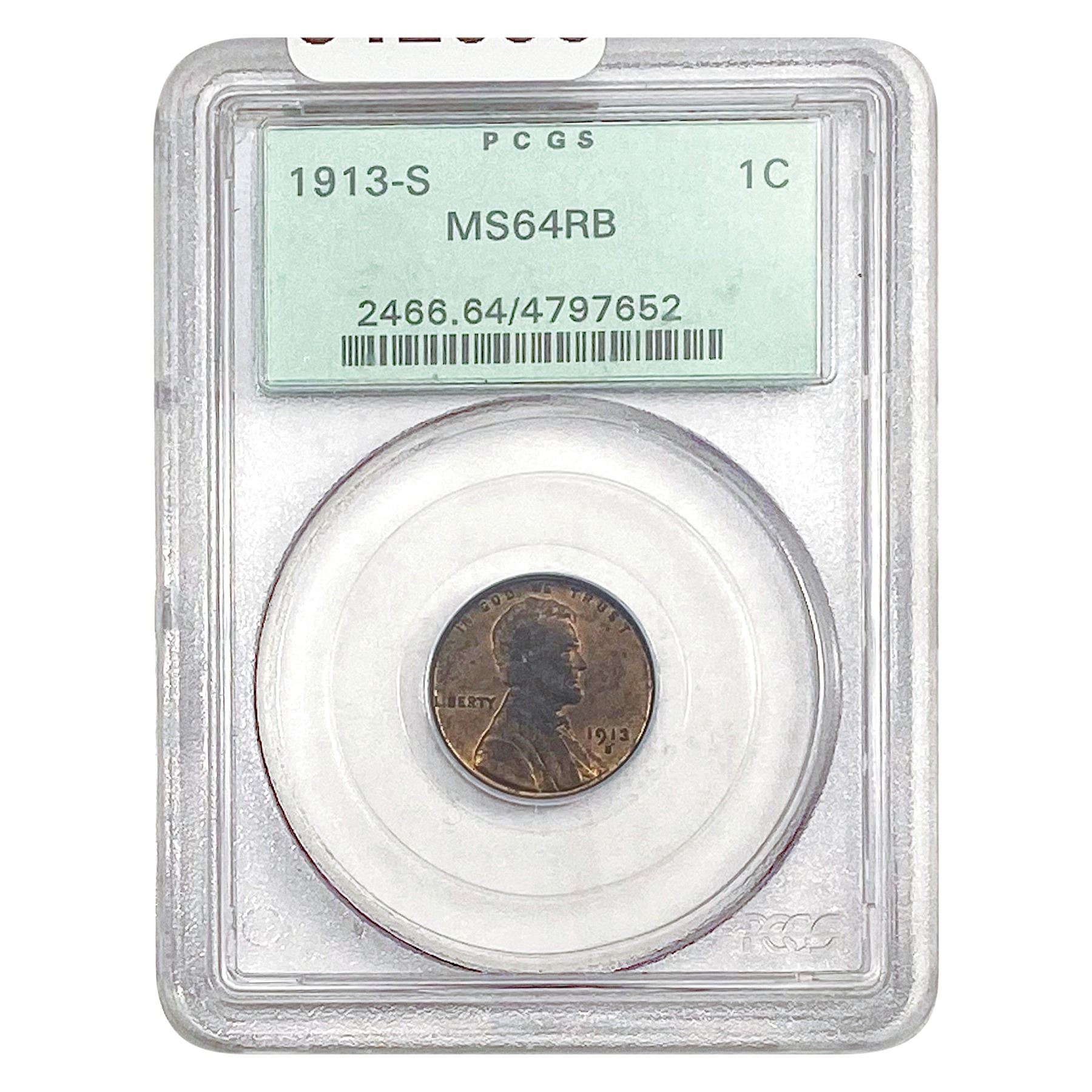 1913-S Wheat Cent PCGS MS64 RB OGH
