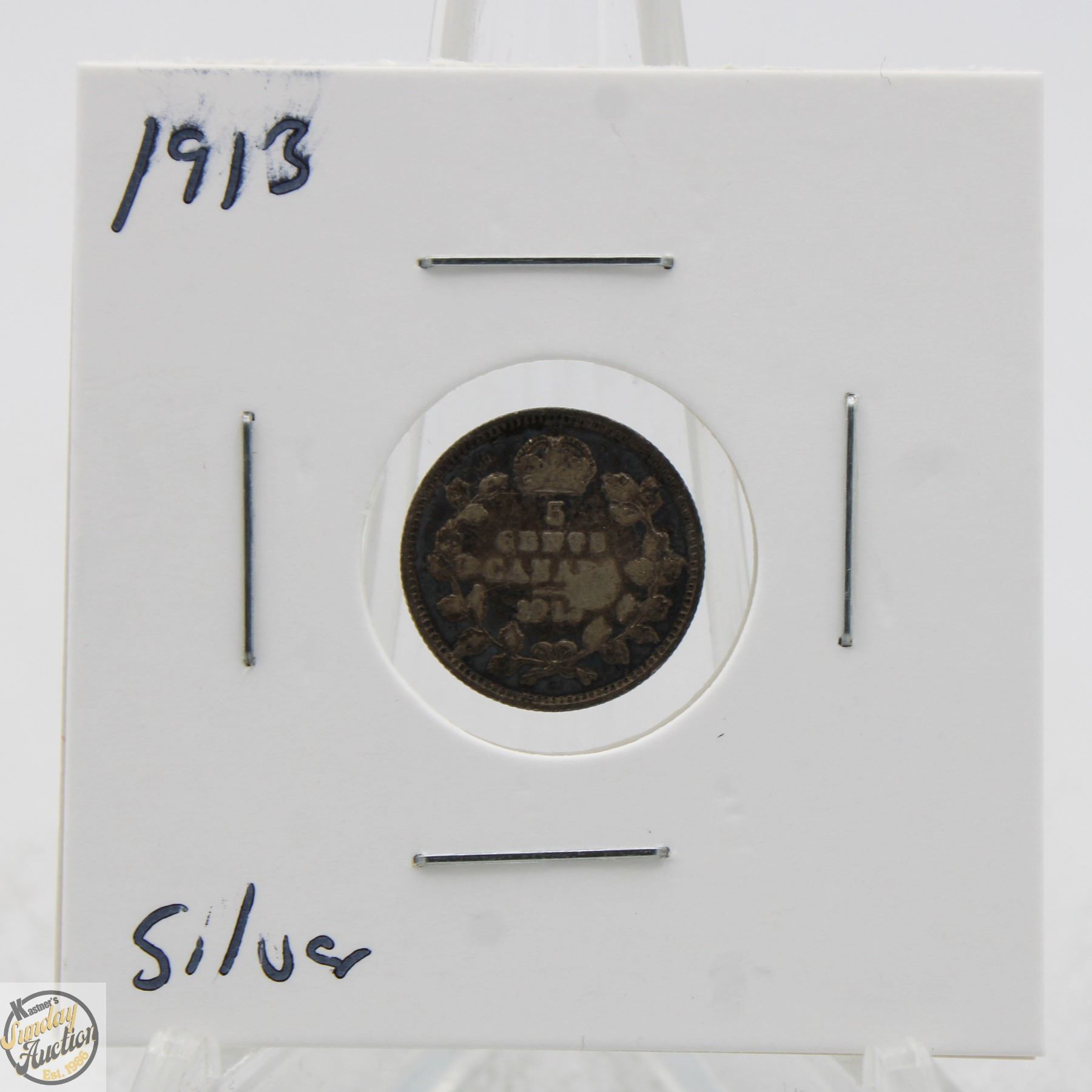 1913 SILVER CANADA 5 CENTS COIN, FISH SCALE