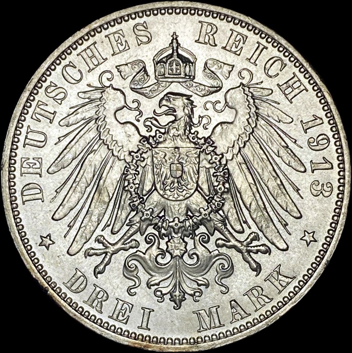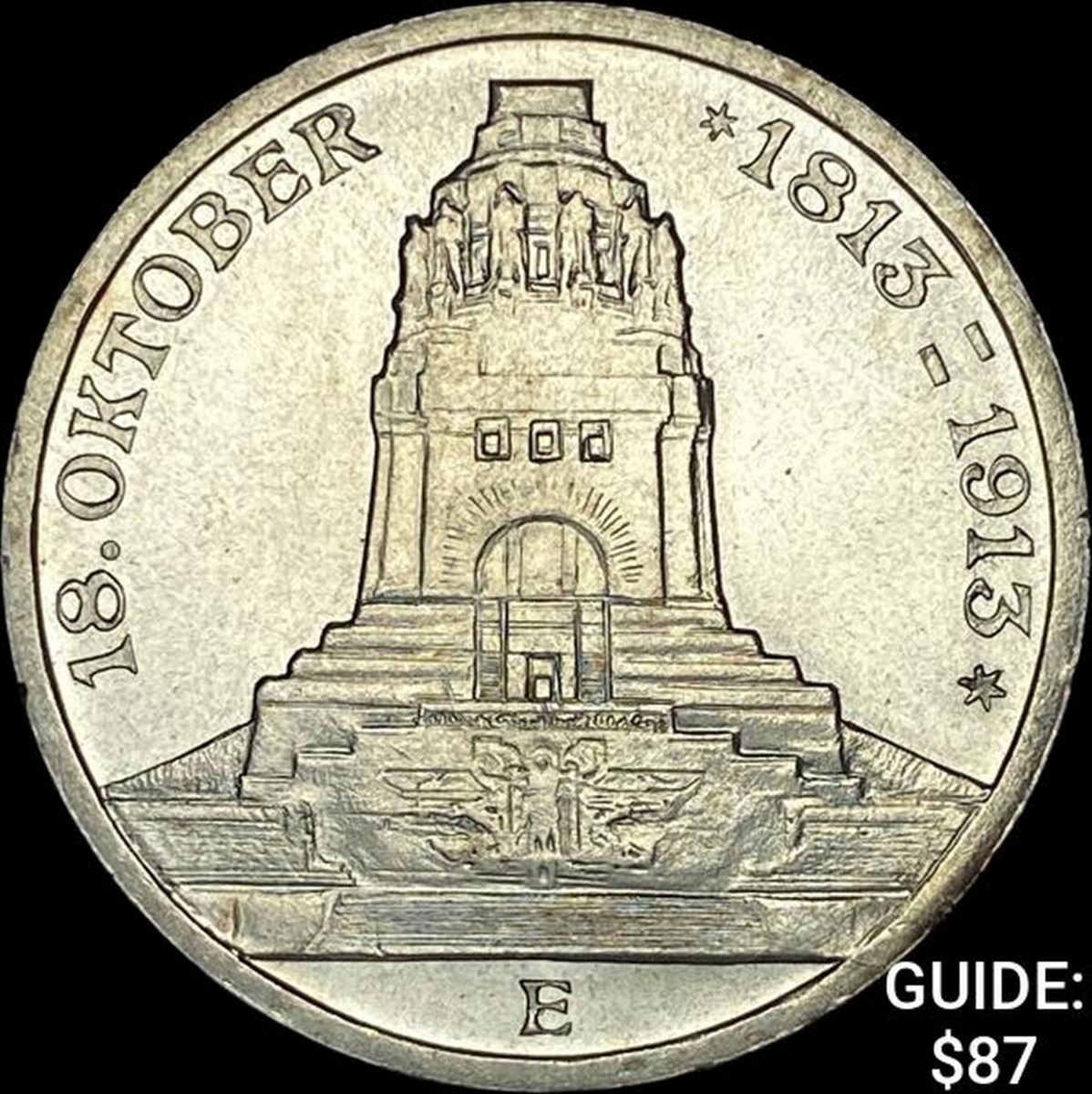 1913 Saxony Silver 3 Reichsmark UNCIRCULATED