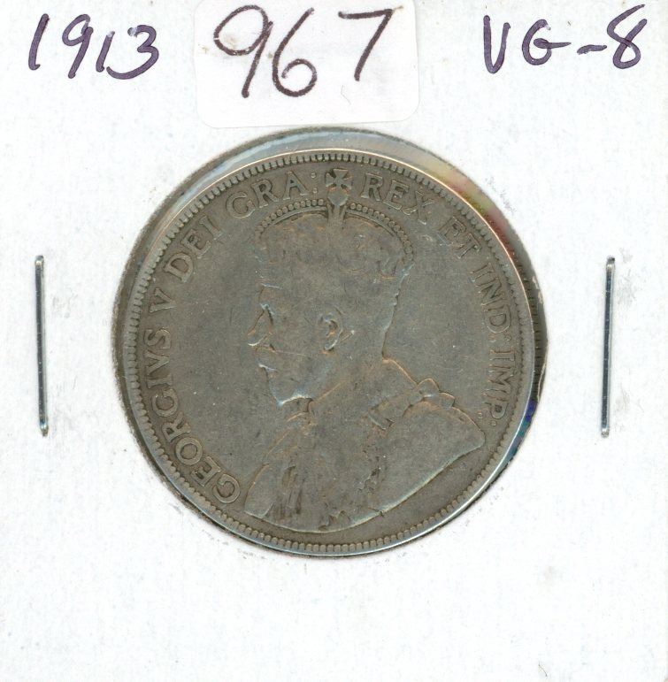 1913 Silver 50 Cents. Key Date. Mintage of 265,889. VG-8.